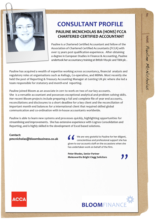 Bloom consultants are dedicated and highly experienced business professionals, committed to supporting and advising clients through difficult business challenges. Our consultants possess all the necessary skills and expertise to hit the ground running on your business projects, respecting your deadlines and immediately adding value to your organisation.
